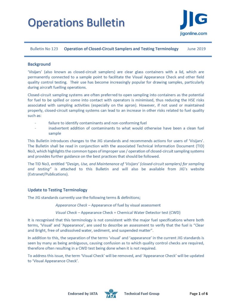 This Bulletin introduces changes to the JIG Standards and recommends actions for users of ‘Visijars’.